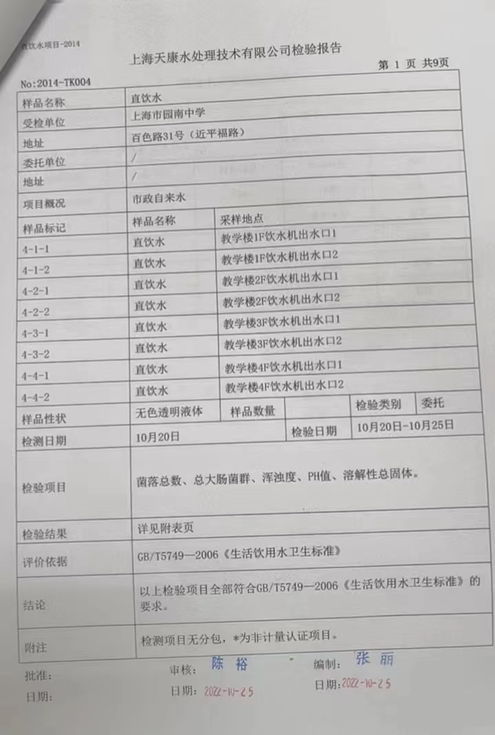 2022年10月第三周直饮水周检