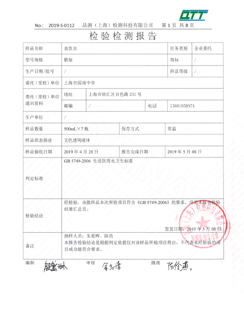 2019年4月直饮水月检报告