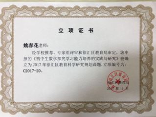 经各单位组织申报,市专家评审,区教育局局长办公会议审定,徐汇区2017年教育科研立项项目已经公布,祝贺我校有两项课题入选: