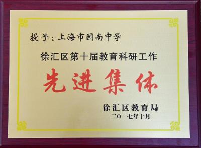 园南中学荣获徐汇区第十届教育科研工作先进集体喜报
